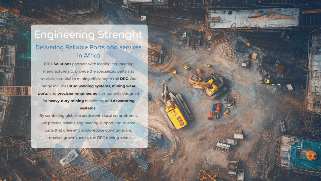 ETEL Solutions partners with leading engineering companies to deliver reliable products and services tailored to the DRC’s mining sector. Through Shevon Engineering, we provide refractory anchors, hex mesh, and stud welding solutions,. In partnership with Spec-Cast, we supply high-quality mining wear parts, undercarriage components, track frames, ground engaging tools, and general castings — ensuring durable performance in demanding environments.